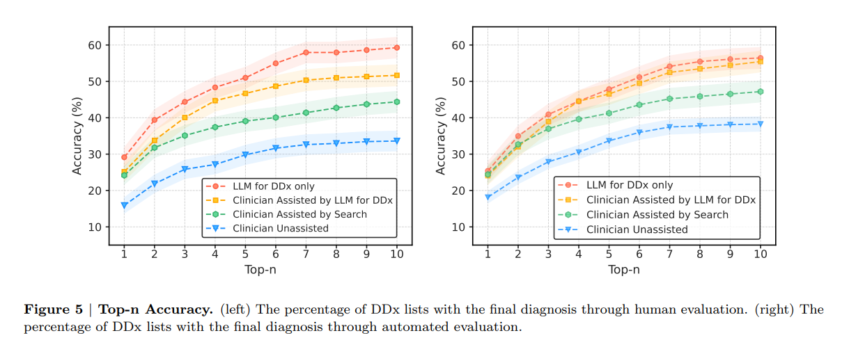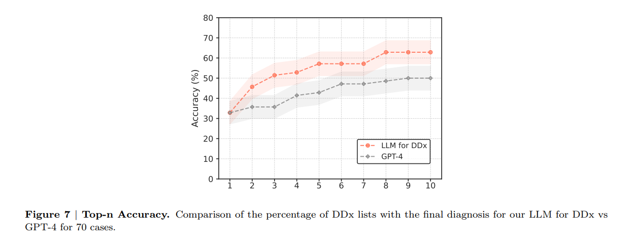 그리고 더 흥미로운 점은, 감별진단을 위해 특별히 훈련한 모델과 일반 GPT-4의 성능 비교였어요. GPT-4는 감별진단에 특화된 훈련을 받지 않았음에도 불구하고 매우 뛰어난 진단 정확도를 보였답니다.
