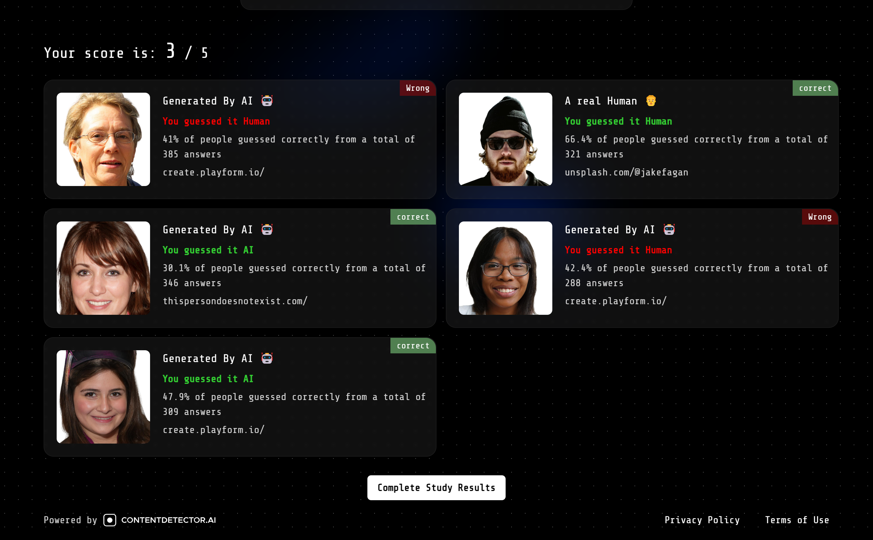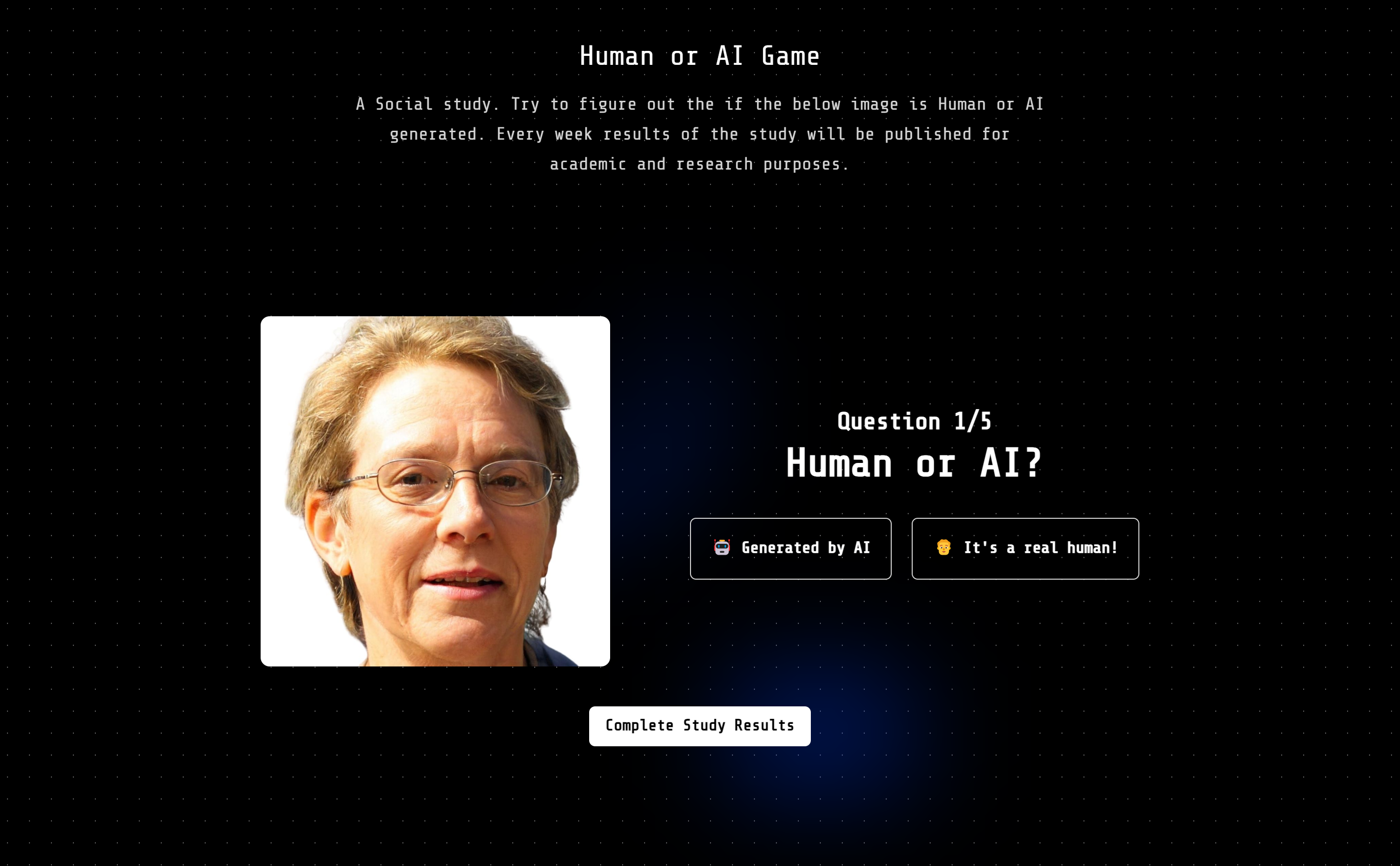 이 게임의 목적은 매우 간단해요. 제시된 이미지가 실제 사람을 촬영한 사진인지, 아니면 인공지능에 의해 만들어진 것인지 추측하는 것입니다.
