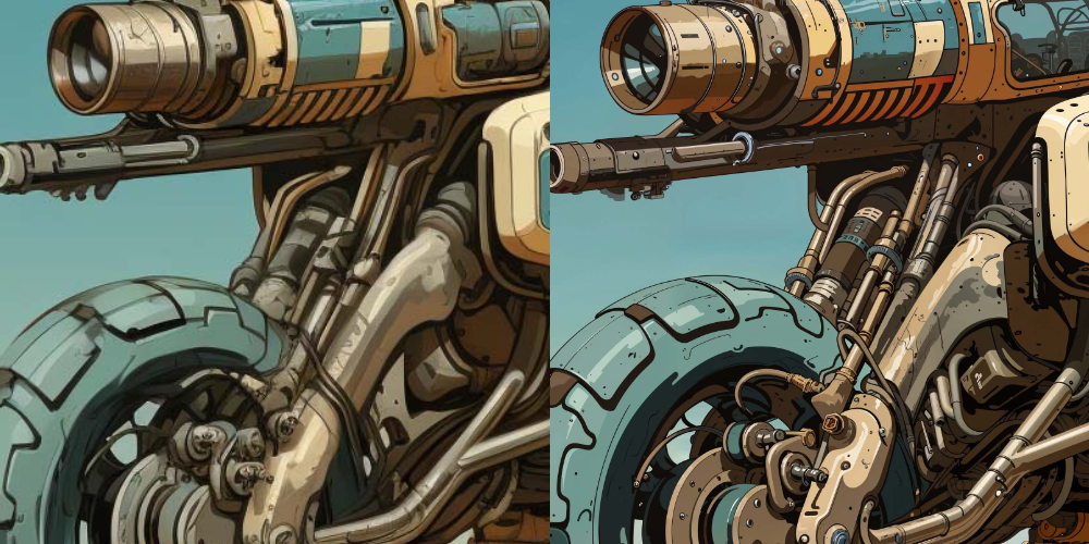 Magnific AI는 이미지 확대(Upscale), 이미지 개선(Enhance), 노이즈 감소(DeNoise), JPEG로 인한 화질 열화 감소(DeJPEG) 모드를 포함하여 다양한 이미지 개선 옵션을 제공합니다. 또한 Creativity와 HDR 슬라이더를 통해 미세 조정이 가능한 부분이 직관적입니다.