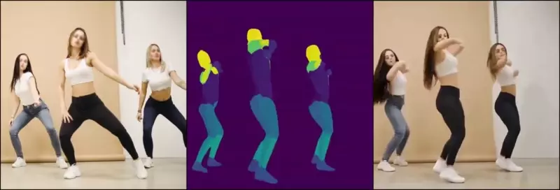 'Animate Anyone'과 기술적으로 유사하지만, MagicAnimate는 조금 다른 정보를 이용하는 것으로 보입니다. Animate Anyone 기술은 OpenPose를 활용해 인체 관절 정보를 분석해서 처리하지만, MagicAnimate는 DensePose라는 인체의 영역 정보를 활용하는 것 처럼 보이네요.
