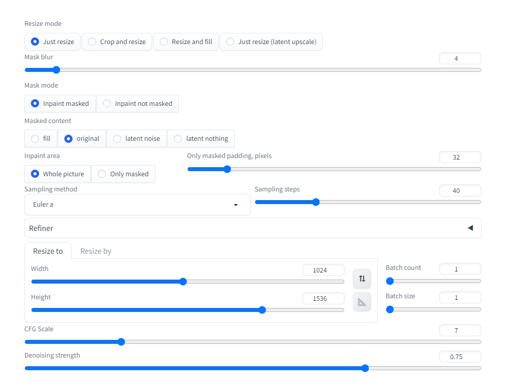 - 마스크 모드: Inpaint masked