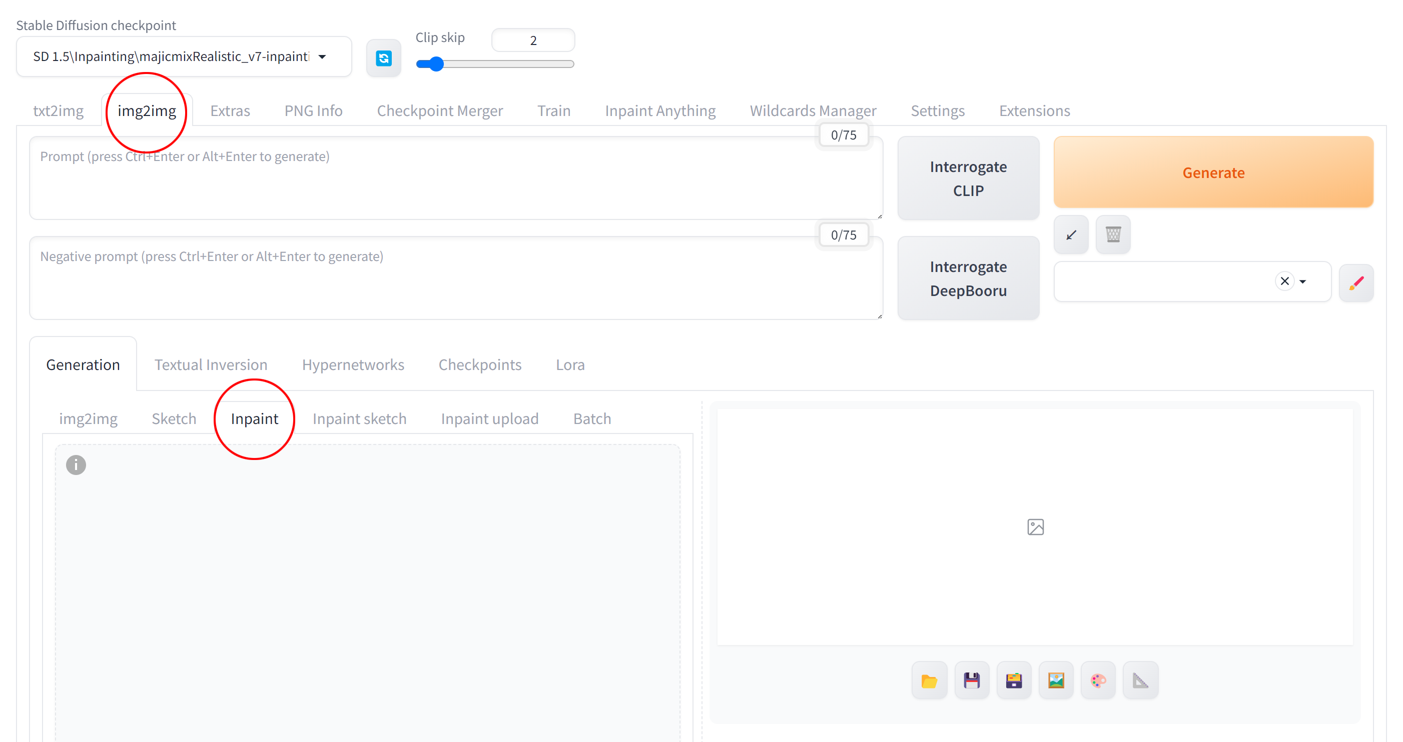 - 체크포인트: majicMIX realistic 麦橘写实 인페인팅 버전